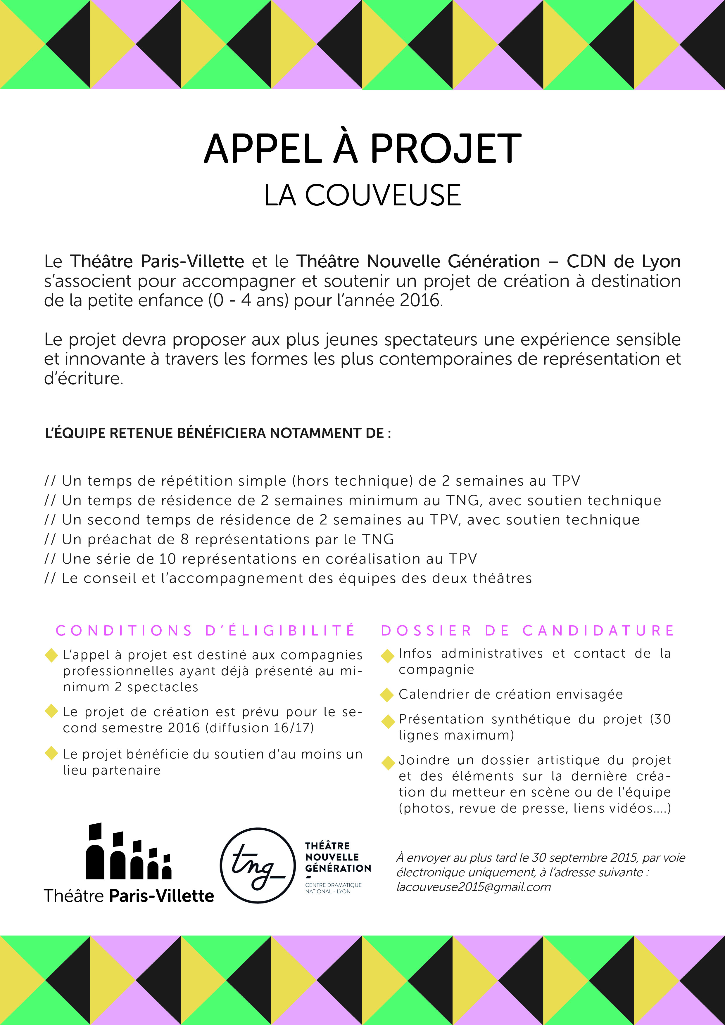 9 juillet 2015 APPEL À PROJET / La Couveuse Accueil Les nouvelles du TPV APPEL À PROJET / La Couveuse