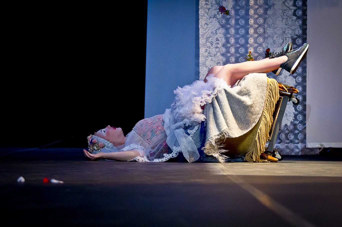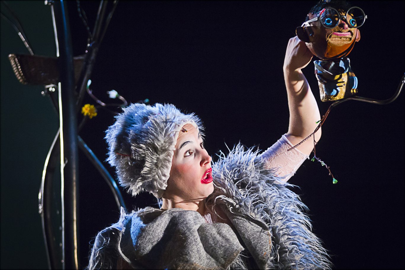 écriture, mise en scène Marie Levavasseur / conseils dramaturgiques Mariette Navarro / assistanat à la mise en scène Fanny Chevallier / collaboration artistique Gaëlle Moquay / jeu Amélie Roman / musique, jeu Tim Fromont Placenti / marionnettes Julien Aillet / création lumière Hervé Gary / scénographie, construction Gaëlle Bouilly / construction Amaury Roussel, Sylvain Liagre / costumes, accessoires Mélanie Loisy / © Fabien Debrabandere
