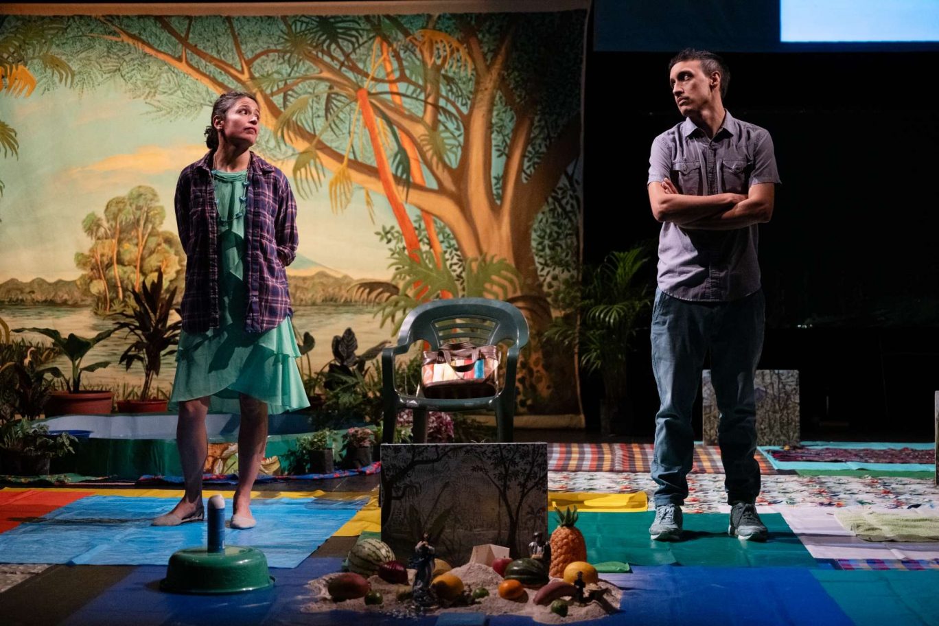 Le spectacle nous entraîne en Amérique centrale, territoire de contrastes, entre révolutions déchues, luttes pour les droits humains, bitcoins et dictatures. La rencontre avec une exilée du Nicaragua fait basculer la fiction dans le réel et pousse les deux artistes à prendre leur responsabilité : il est temps de passer à l’action.